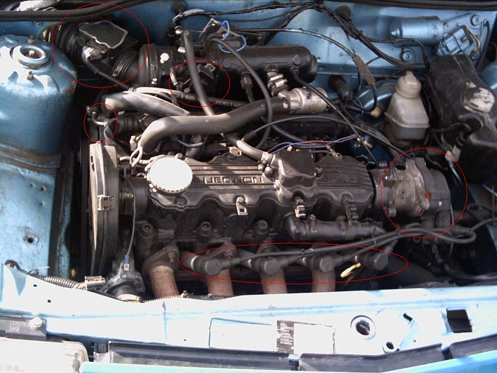 Ein Großteil der GTE Schrauber versuchen an den aufgebohrten 18E von Mantzel dran zu kommen,oder schrauben ihren Kopf vom 18E auf nen 20NE Block.Alleine in Gillenfeld auf dem Treffen hab ich vier Autos mit diesem Motorumbau gesehen,und wer weiß welche ich noch im Suff übersehen hab. Habe nämlich später zu Hause auf den Fotos gesehen,dass ich ein Bild (siehe unten) von nem Corsa Motor gemacht hab,wo ein BigBlock (keine Ahnung ob 1,8 oder 2L) mit 18E Kopf und Ansaugbrücke drauf war.Der hatte aber anscheinend die Motorsteuerung vom C20XE drauf,weil er den Verteiler,die Zündkabel und den LuftMassenmesser vom XE dran hat.Es gibt zwar den 2L Astra mit Luftmassenmesser,aber der arbeitet mit Drosselklappenpoti und der C20XE nur mit Schalter,bzw die ersten XEs. Und wie schon gesagt,passt auf die Drosselklappe vom 18E nur der Drosselklappenschalter.
