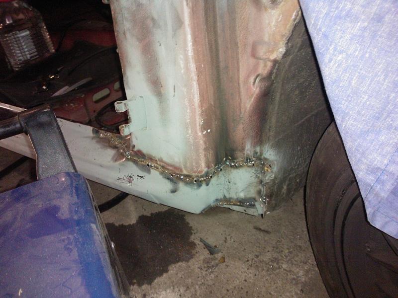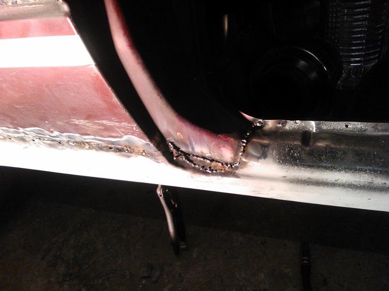 Habe dann gestern noch den Schweller eingeschweisst. Dieses ganze anpassen mit der Tür und mit der Druckluftsäge war sowas von zum Kotzen :rollin: ständig blieb das ding stehen, sodass ich ca 80% mit der Flex geschnitten habe und es war hinterher schön passig =) Naja im bereich des Bogens musste ich mir was einfallen lassen weil das Blech an der Stelle nicht wirklich dem original entsprach, aber wenn ich gespachtelt habe wird man davon nix mehr sehen! Desweiteren habe ich dann noch den Ablaufschlauch vom Schiebedach verlängert und unten aus dem schweller rausgucken lassen. Hier mal ein Bild: