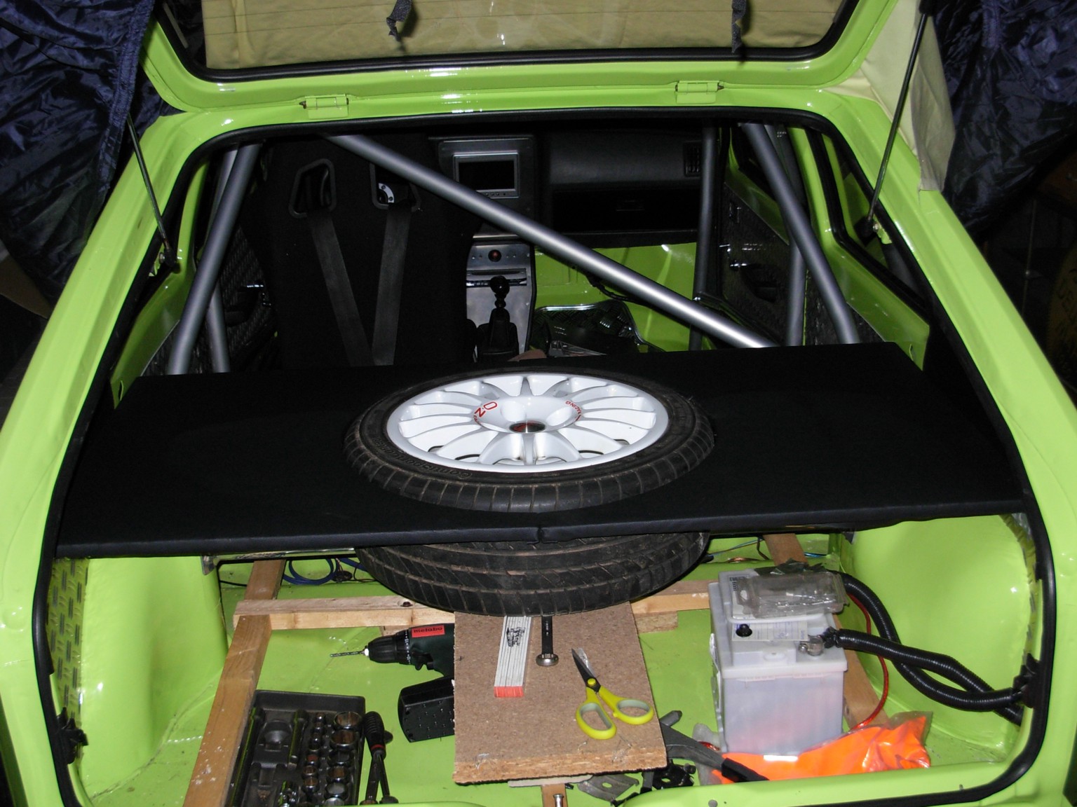 Die platzierung der Felge so weit oben ist mehr aus der Not her gekommen. Wegen der dadrunterliegenden Domstrebe geht das nicht tiefer. Weiter nach hinten geht auch nicht weil nicht genug länge da ist und nach vorne würde wegen der schräge nicht aussehen. Ein Sup unter dem Rad geht nicht wegen der befestigung.