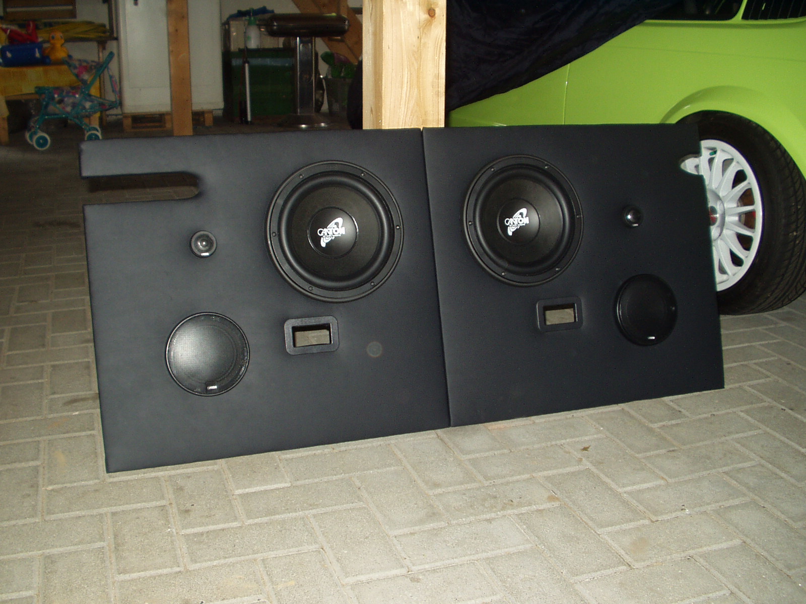 Die Boxen sind auch enlich da. Allerdings war das 3 Wegesystem so schlecht verpackt das ein Bass den Transport nicht heil überstanden hat.