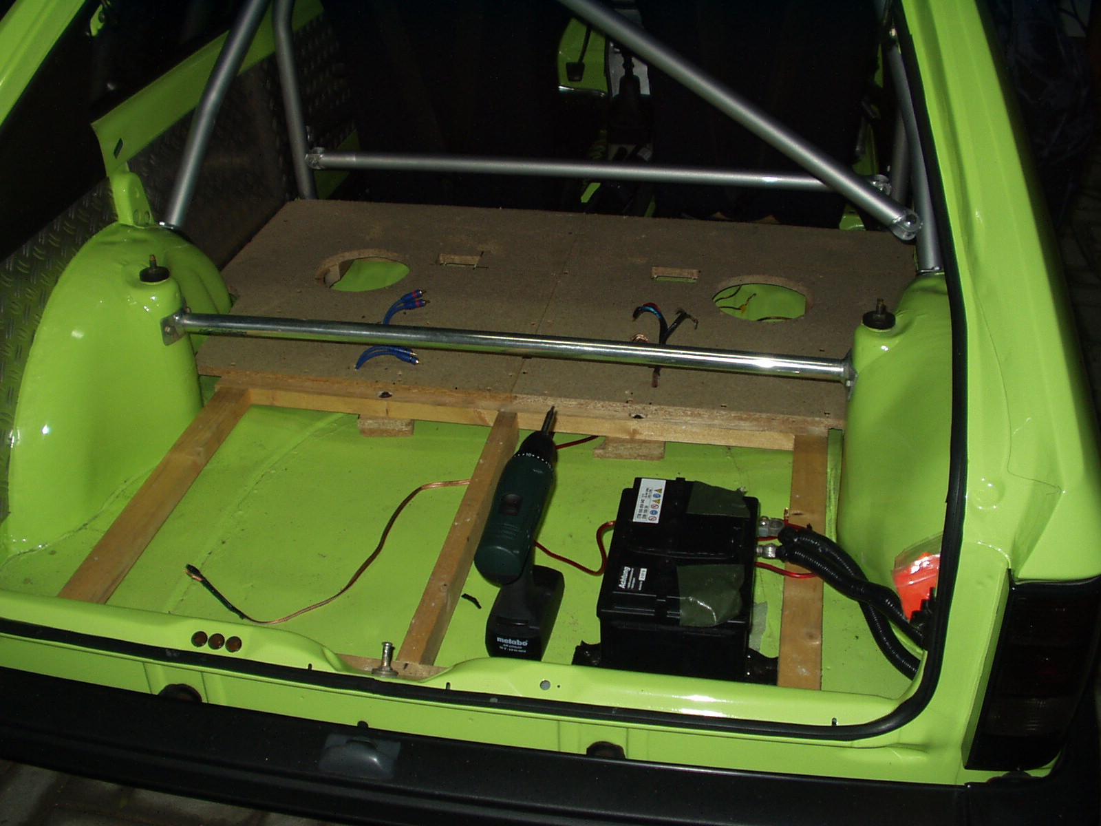 Auf jeden Fall etwas aufwendiger gebaut! Die Form die ich mir Vorstelle ist schlecht zu beschreiben aber das wird man hier noch zu sehen bekommen. Bezogen wird das ganze dann wohl mit schwarzem Kunstleder. Und da ich noch eine Felge als Reseverad ersteigert habe muß ich das auch noch mit unterbringen. War ursprünglich nicht geplant.
