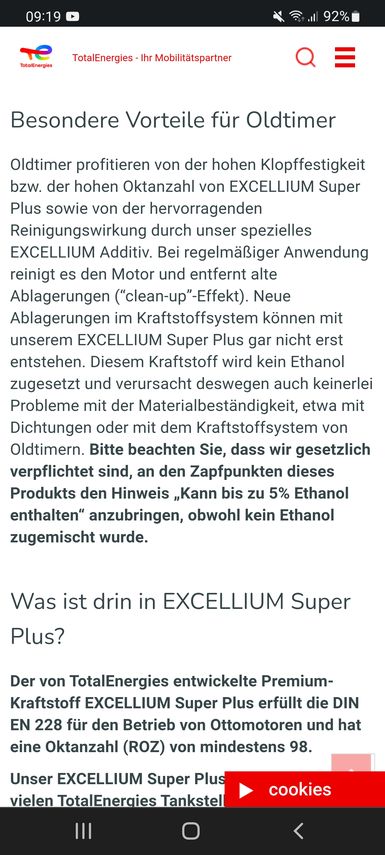 Ich hab mich mit dem Thema auch schon beschäftigt. Ich tanke in meine Saisonfahrzeuge nur noch teures Superplus, wo kein Ethanol beigemischt wird. Z. B. V-Power von Shell oder "Excellium Super Plus" von Total. Total erwähnt das auch explizit auf deren Website.