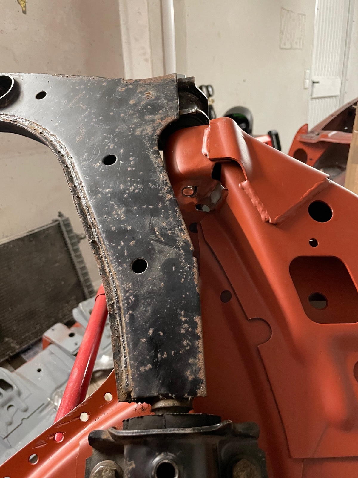 Alles anzeigenGestern Nach kam mir in den Kopf, dass unter dem Querträgerboden ja noch das Blech vom Querlenker ist. Dadurch drückt die Rahmenlehre das Ganze ja noch ein paar Millimeter höher. Von daher werde ich alles in einem anbringen und die Querlenkerstütze zunächst mit dem Boden verschweissen. Auf der Werkbank geht alles einfacher.