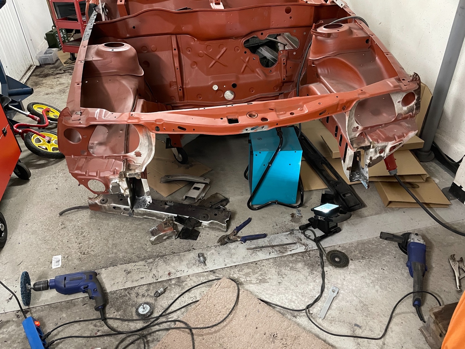Ich habe erstmal die alten Traversen vorne entfernt, um anschließend auf die 16V Front umzubauen.