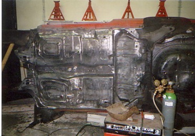 Erstmal mit Heissluftfön und Spachtel und anschliessend mit Flex und Drahtbürstenaufsatz blank gemacht! ![]()
