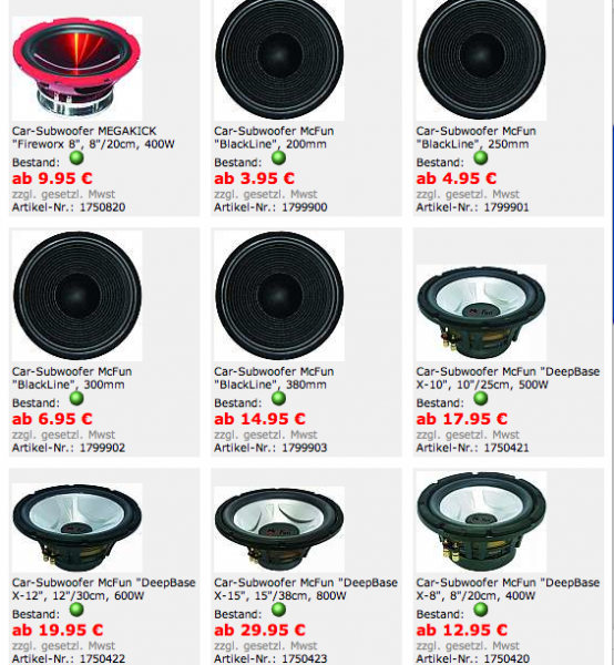 Es muss ja aber nicht das teuerste. Ich hab etwas älter Infinity Kappa Serie Lautsprecher, die klingen zwar ganz gut, aber wenn ich da die etwas billigeren Magnat mit gleicher Leistung daneben halte, dann ist dort mehr tiefere Bässe zu hören. Nur bei Endstufen. Da würde ich nix von billigherstellern kaufen.