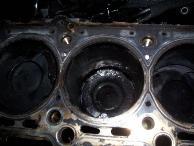 war der injektor vom 4. zylinder undicht dadurch isser auf dem zylinder wohl zu heiß geworden und der kolben geschmolzen, das geschmolzene material hat sich schön an der zylinderwand abgesetzt und er hat angefangen zu fressen wobei das meiste was man sieht der abrieb vom kolben ist