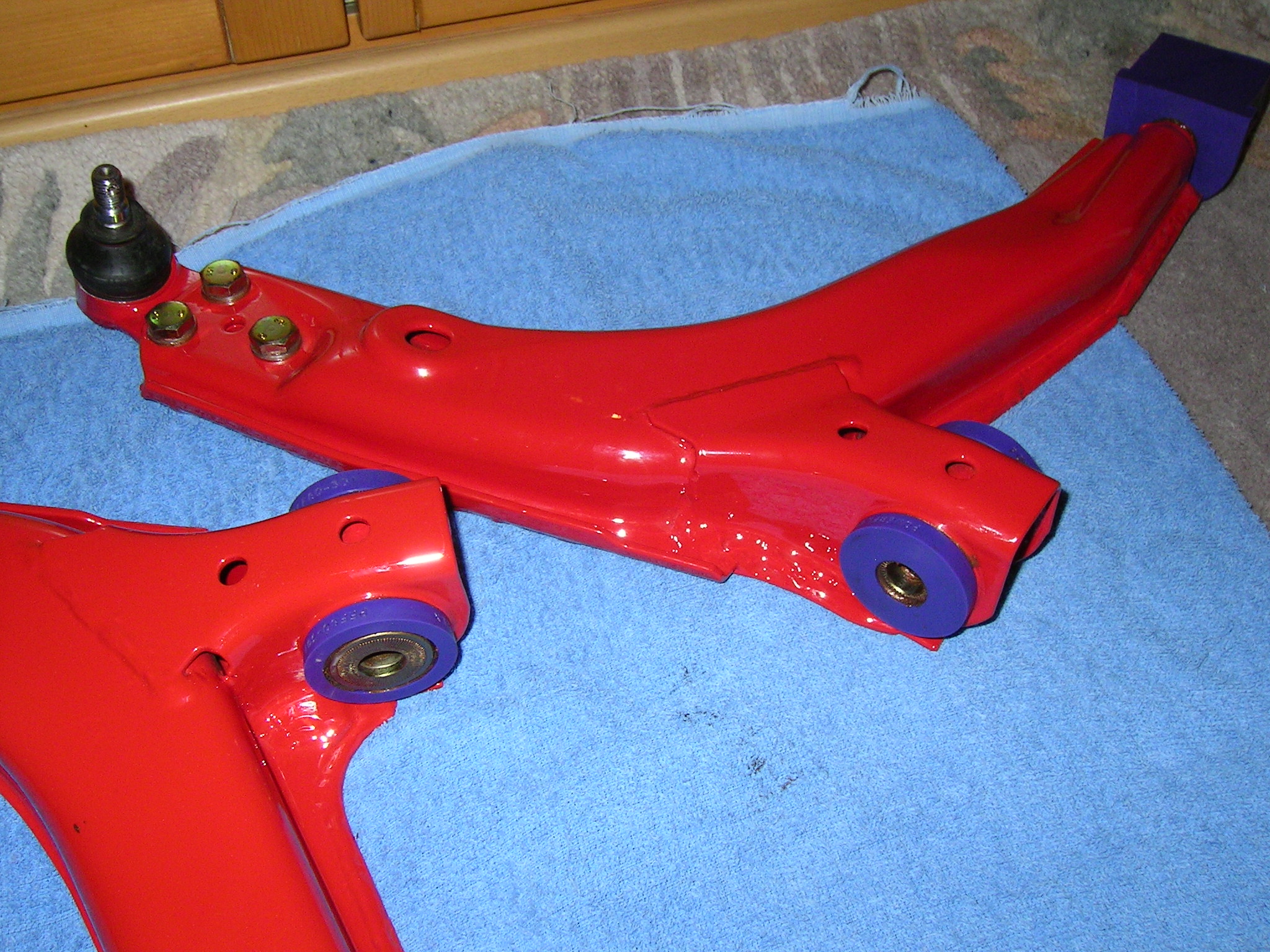 Bild von meinem GTE :Die Stabiaufnahmen sind selbergebaut, weil nix ausm Opelregal richtig gepaßt hat. Die Querlenkerschraube ist nicht verkehrt rum drin, da ist nur zum "grob zusammenstecken" eine Gewindestange drin. Wenn Alles paßt, kommt da die richtige Schraube rein.