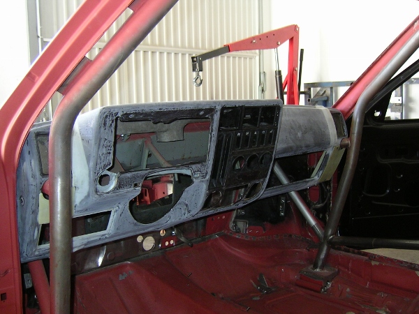 Ich hab mich mitm Armaturenbrett gespielt. Ich mußte es in 3 Teile schneiden, damit ich es hinter den Bügel der Zelle bekomme.