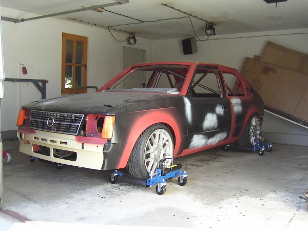 So sieht die Erbse jetzt aus. Das weiße Zeug ist eine Grundierung vom Spangler. Blechmäßig bin jetzt fast durch, es paßt auch Alles ziemlich gut zusammen. Als nächstes kommt dann der Unterboden dran - abschleifen und grundieren. -