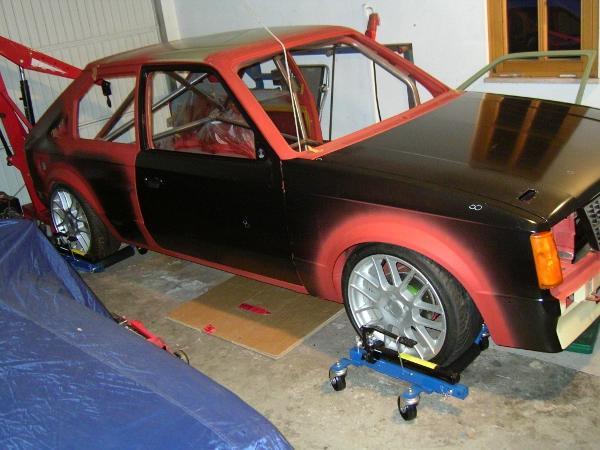 Die linke Seite ist jetzt soweit dran. Demnächst kommt die Erbse zum Karosseriebauer - Dach ausbeulen und Dellen aus den Neuteilen rausdrücken. -