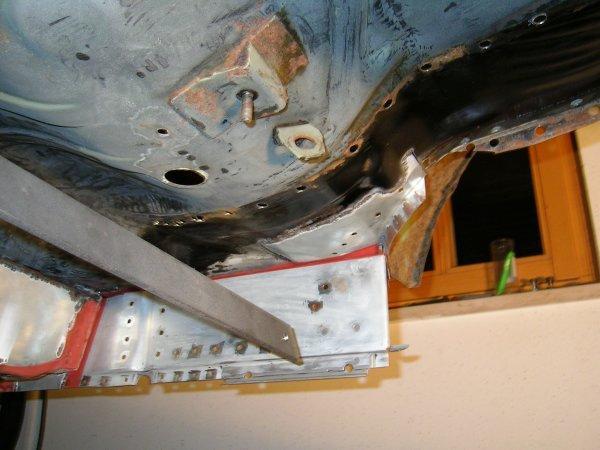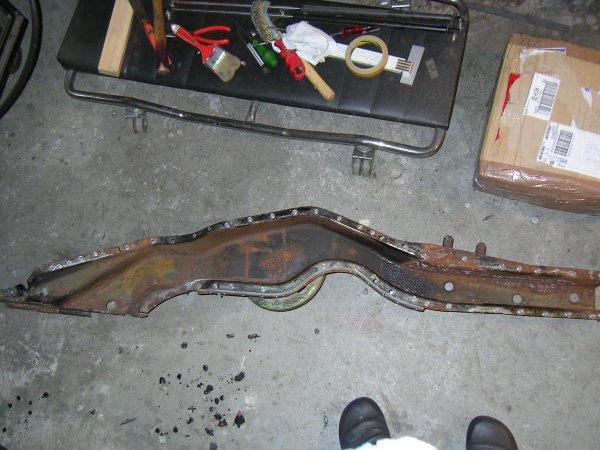 Es ist Nichts dazwischen gekommen, der linke Längsträger ist draußen - und schön rostig :