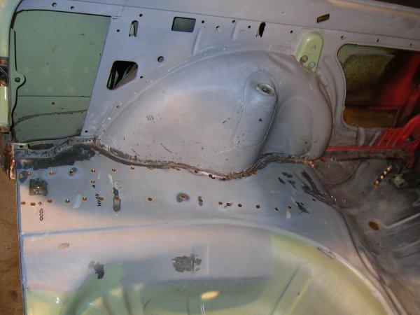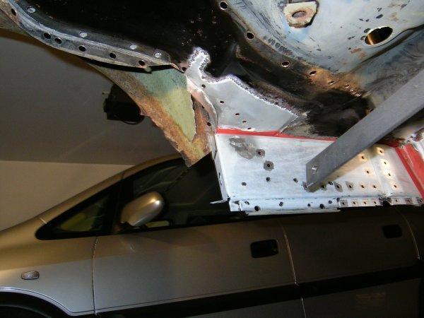 Dafür hat es das Bodenblech hinterm Längesträger nicht so stark erwischt :