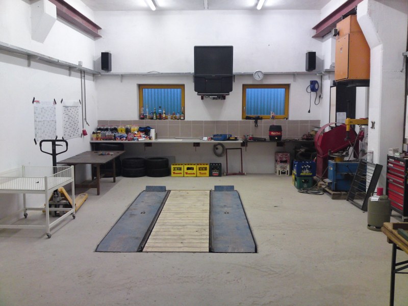 Achsheber war leider beim kauf der bühne nicht dabei, ist aber schon in planung (führungen sind an der bühne dran), und kranbahnschienen für hallenkran sind beim bau auch schon montiert worden. Ich muss aber auch erst noch zeit finden den kran anzupassen....... ich bräuchte ein jahr urlaub