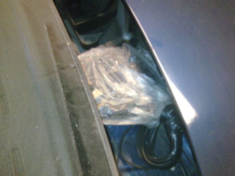 Das Steuergerät der Autogasanlage hab ich unter der Wischerabdeckung gefunden, professionell mit einer Plastiktüte gegen Nässe geschützt. Das Kabel mit 12V hat einen Durchmesser von etwa 1mm, das Massekabel satte 10mm. An der Stelle, wo es angeschlossen ist, wurde der Lack aber nicht entfernt...