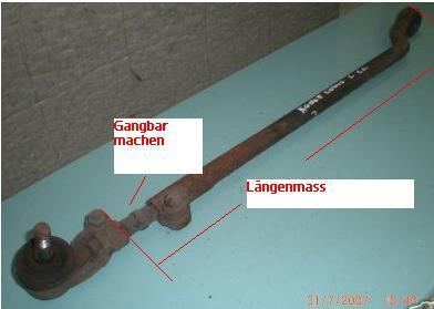 Vermutlich kannst du eh die komplette Spurstange raus machen weil des zeug so übel zusammengesrostet ist.... du suchst dr nen punkt von der spurstange und misst dir die länge ab.....