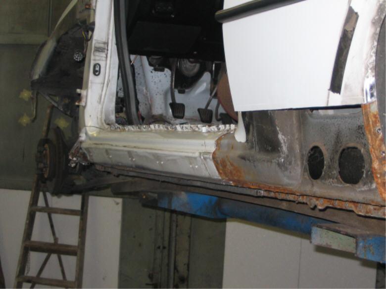 - beide Kotflügel vorne am Übergang zu den Schwellern + verzinnen