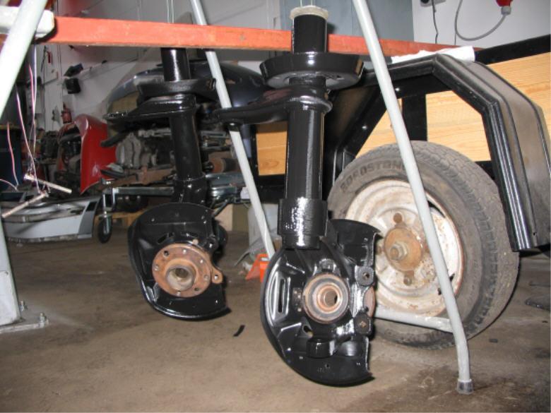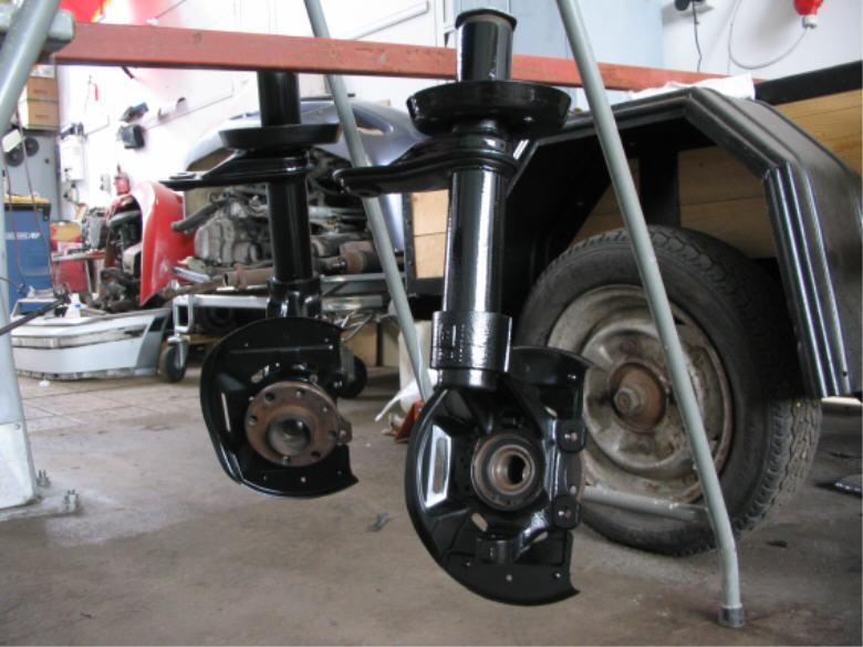 Die vorderen Querlenker, Federbeine und die Hinterachse sind lackiert.