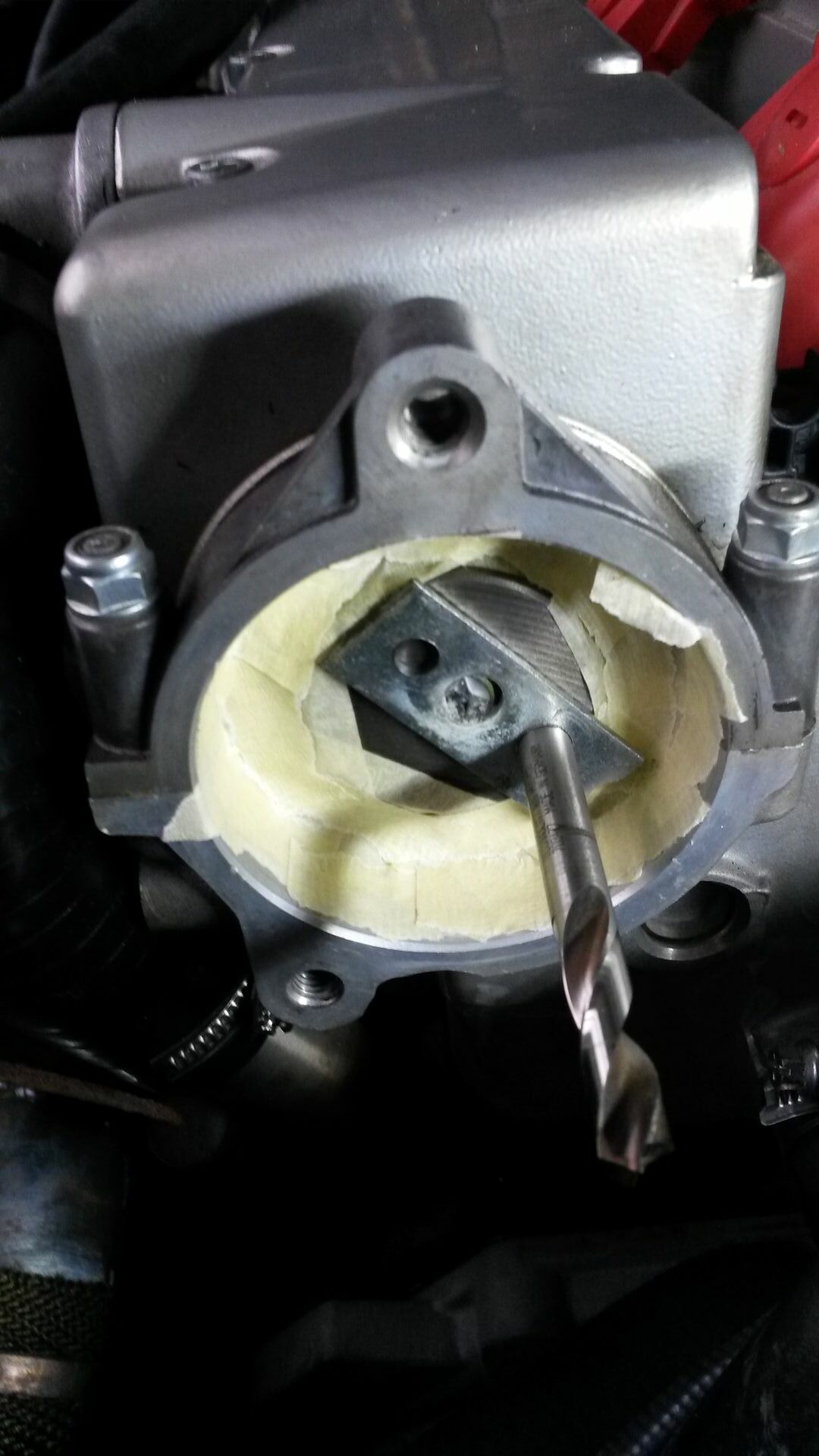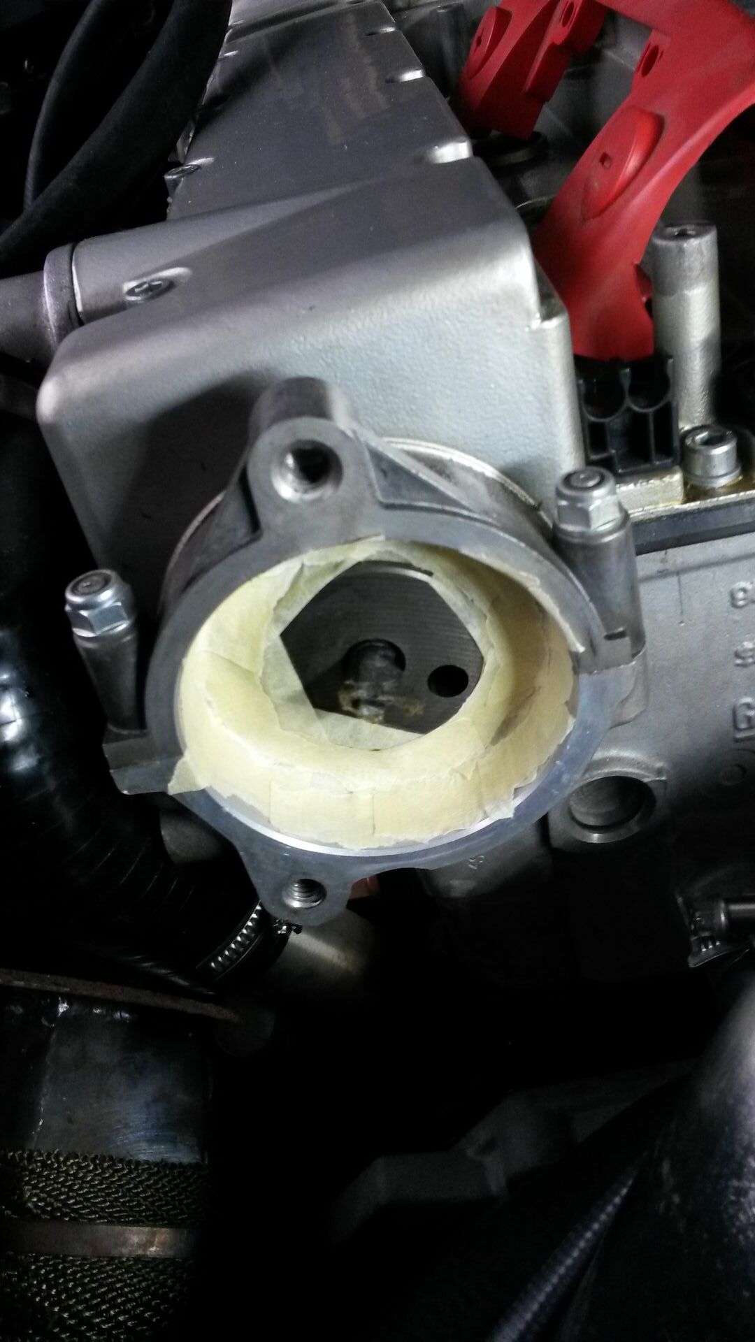 Nun mußte das Gewinde in meine LET Nockenwelle. Damit keine Späne in den Motor fallen, alles abgeklebt.