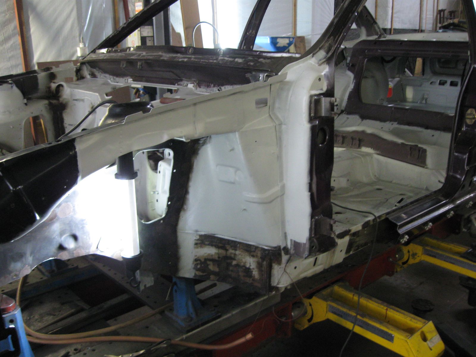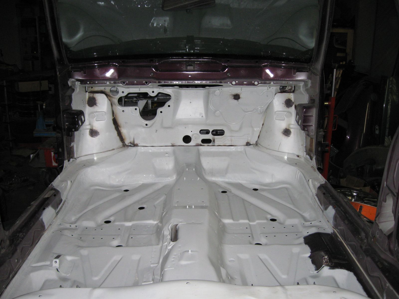 Wieder wurde der Einstieg und die Seitenwand verschweißt und von innen grundiert.