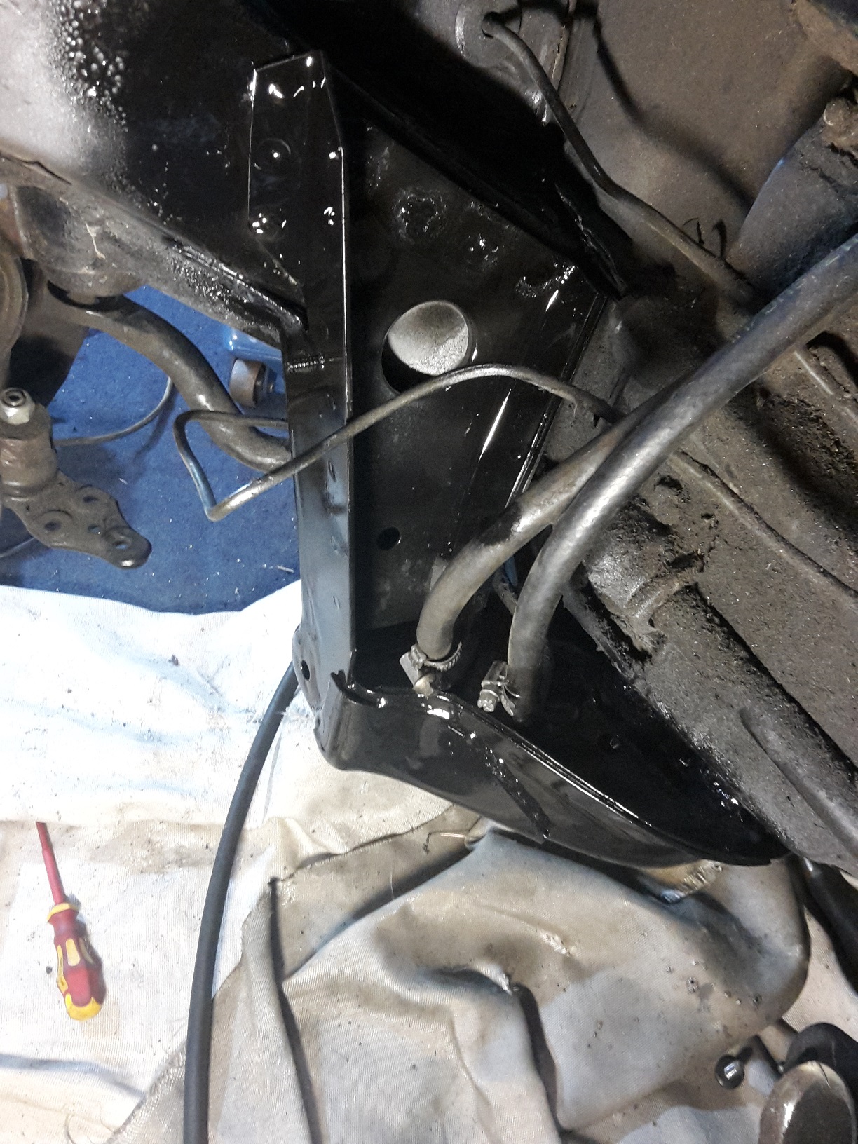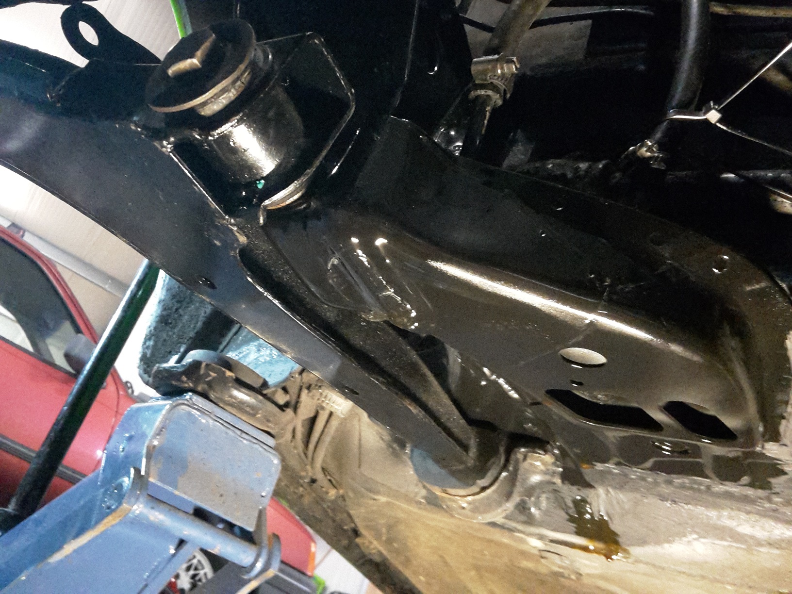 So hat sich erledigt, da drüber wars Blech auch durch also alles neu. Und ja man muss von innen ran und den Hohlraum über den Querlenkerabstützungen aufmachen. Da war aber wenigsten fast alles rostfrei.