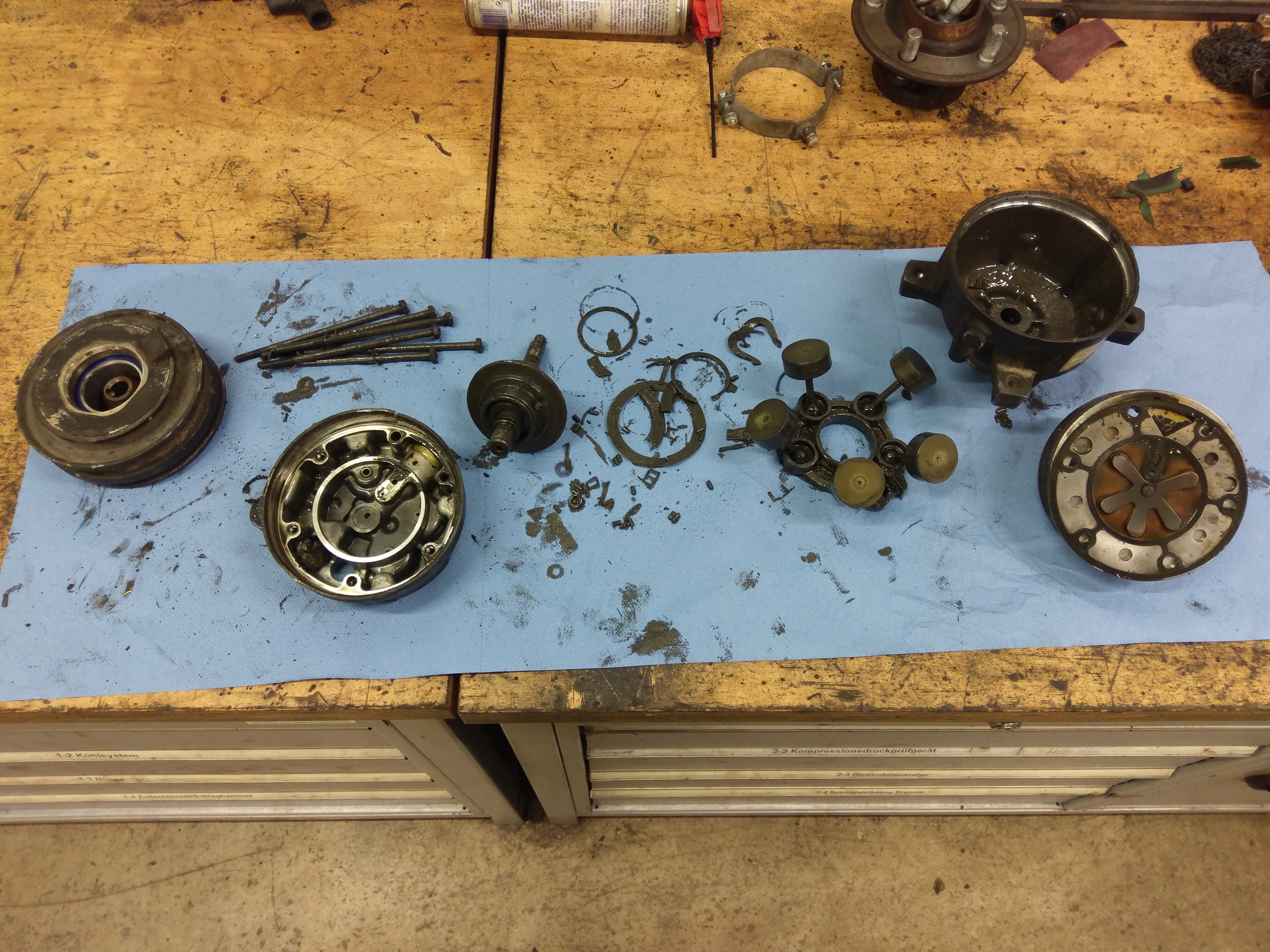 Letzte Woche wollte ich im Zuge der Umrüstung auf das Kältemittel R134a den Klimakompressor neu abdichten. Leider erlebte ich beim zerlegen den Supergau. Klimakompressor innen total zerstört mit Spanbildung. Das wird teuer