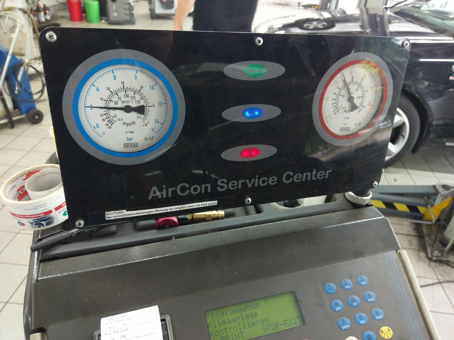 Also, Anlage evakuiert, Öl + UV und R134a rein. Hoffnungsvoll die Klima eingeschaltet und was passiert? Kompressor zieht an Niederdruck auf 6 Bar, Hochdruck auf 4