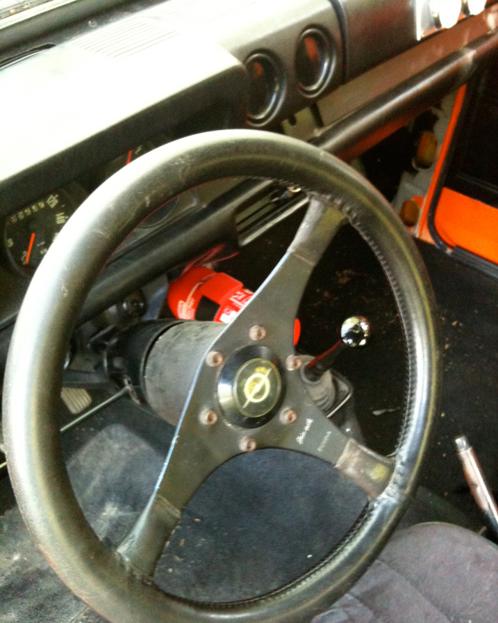 Wir haben bis jetzt einen Bügel eingebaut, die Lackierung etwas modifiziert, die Stosstangen entfernt, ein Sportlenkrad verbau, etwas tiefer, gelbe Konis, 7er ATS uralte Bauform mit 185/60 und und und...Eine neue, völlig nachgeschweisste und völlig überarbeitete Vorderachse und ein Gemachter Motor mit Fächerkrümmer und 40er Weber ist gerade im Aufbau und wartet auf den Einbau in den Kadett...