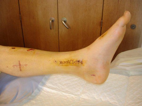 ein paar wochen nachdem er wieder arbeiten konnte ist er dann auf einem liegebrett ausgerutscht und hat sich schien- und wadenbein gebrochen, das fussgelenk ausgerenkt und sämtliche sehnen und nerven im fussgelenk gerissen!