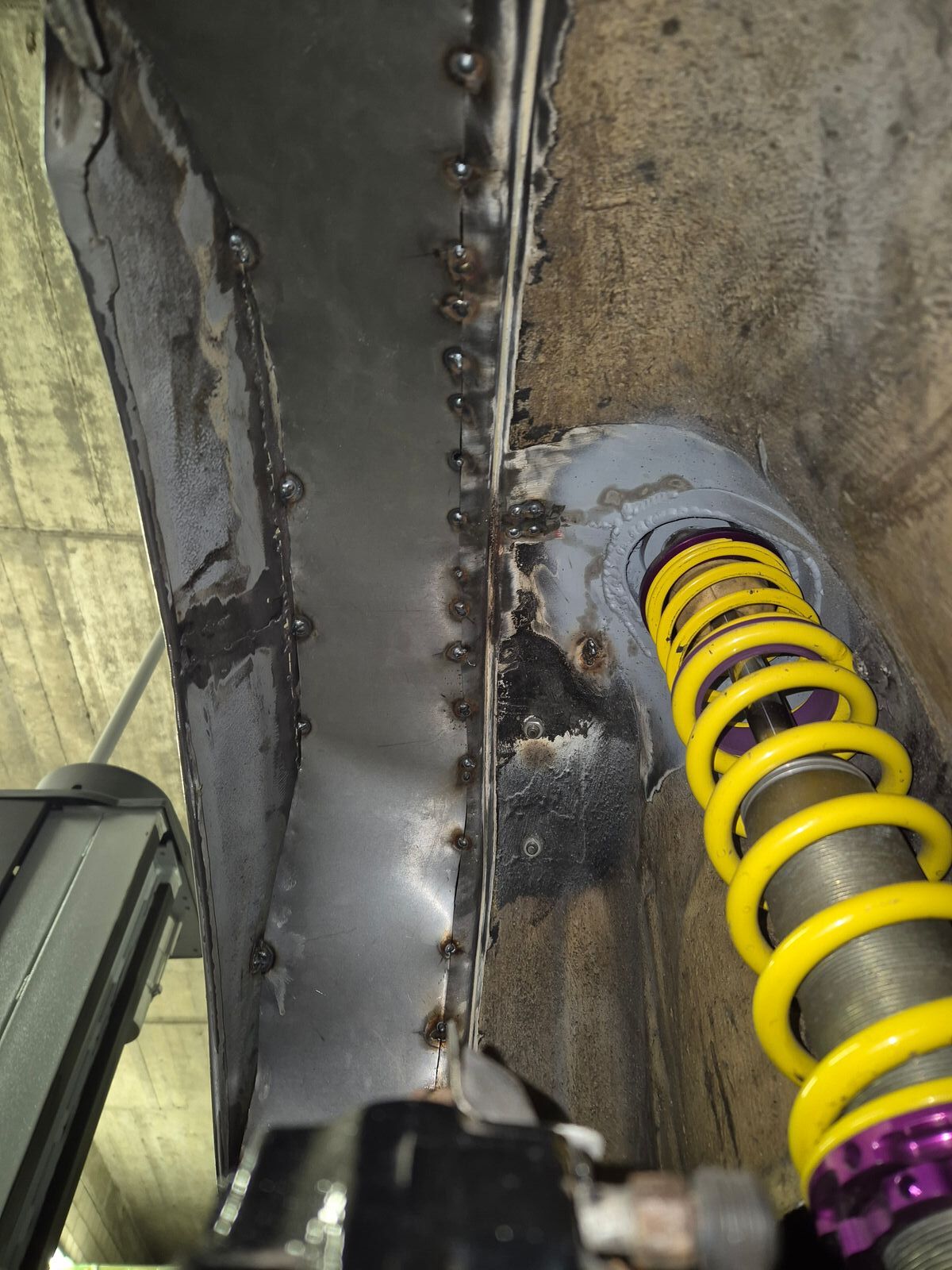 Dann habe ich die Dome noch etwas verstärkt mit 3mm Stahlplatte aus dem Zellen Bau. Sowie an der Hinterachse die Aufnahme verstärkt da dort ja nun deutlich größere Kräfte wirken.