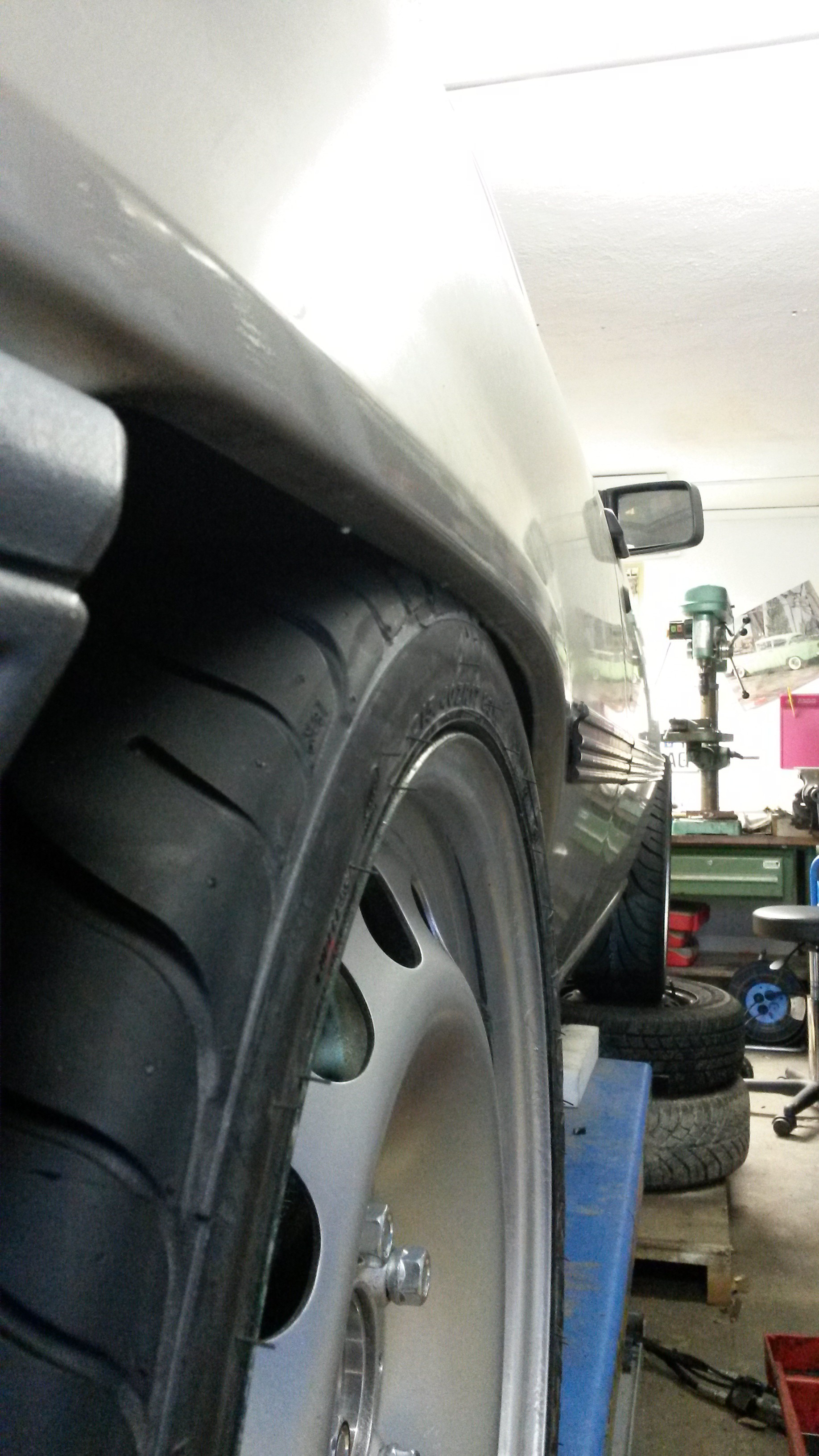 Es wurden 2° Sturzkorrekturplatten verbaut und zusätzlich wurden die Kanten umgelegt. Nun haben die Räder genug Luft...