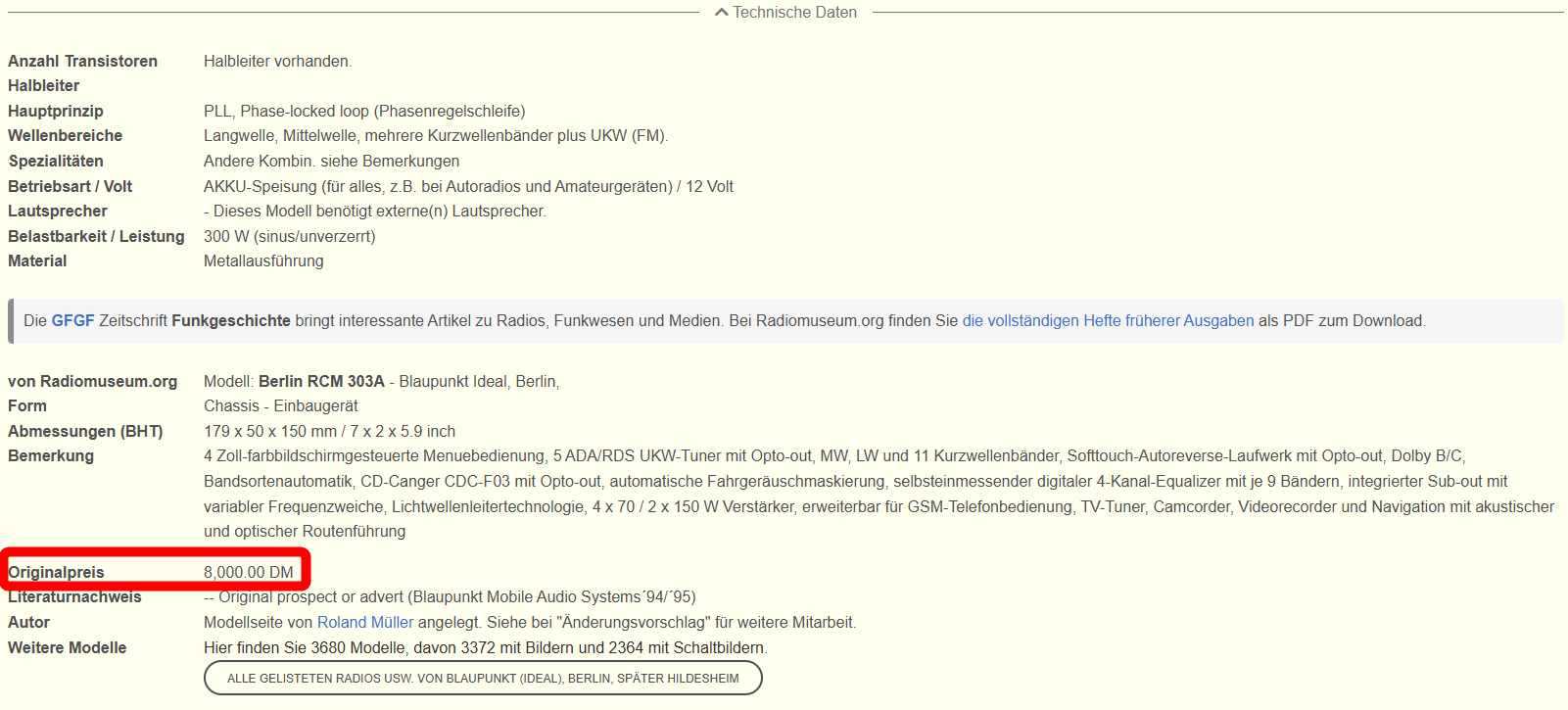Basierend auf den 180x50 mm des Radios ist der Verstaerker ca. 340x240 mm gross, also genau der Klotz den Du beschrieben hast. Fazit fuer mich: "Myth confirmed!" (mit den Worten der Mythbusters