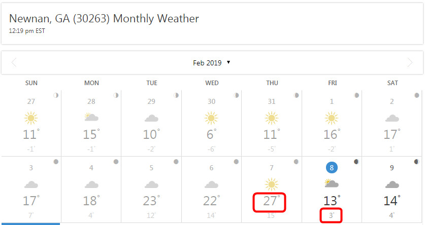 27 Grad Celcius hier gestern. Heute Nacht werden's wieder 3 Grad C.