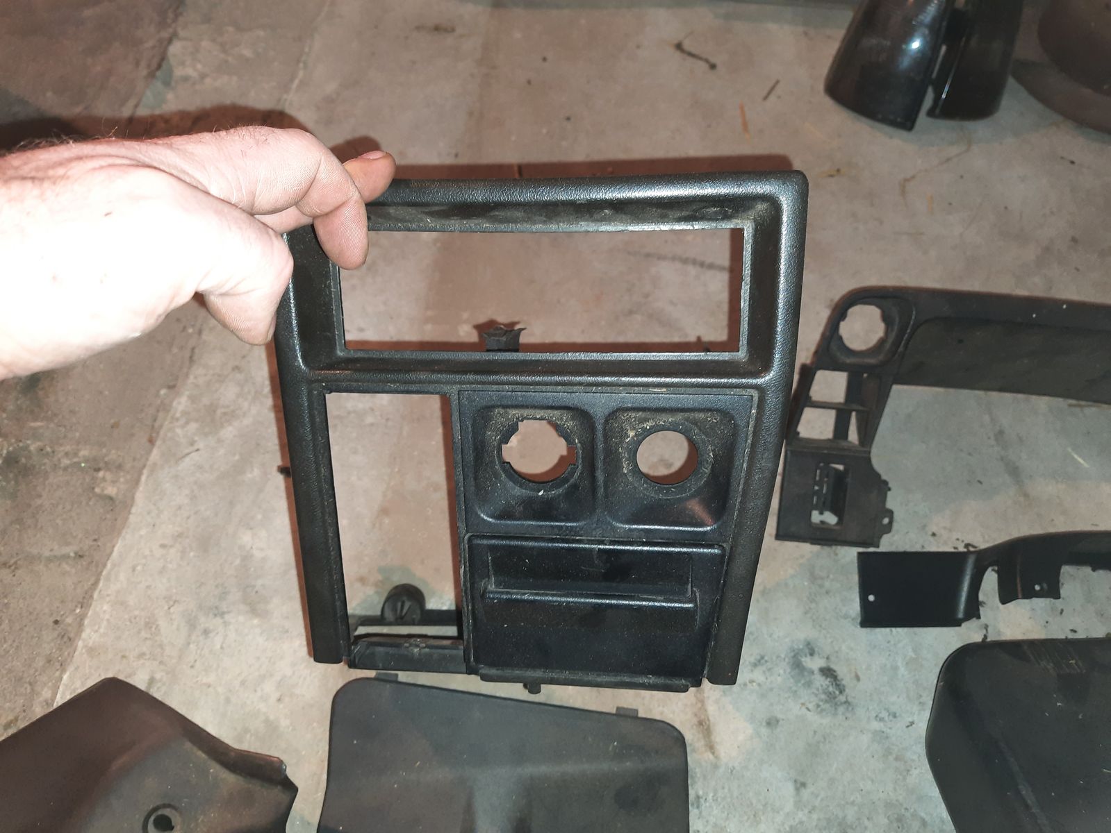 - Ein Sack Interieur Kunststoff Teile Kadett E 90iger Modell z.B. Handschuhfach, Fach über dem Handschuhfach, Sonnenblende, Rahmen wo Radio und Aschenbecher drin sitzt in dunkel Braun, Heizungsamatur