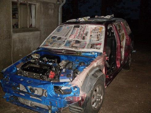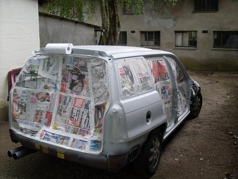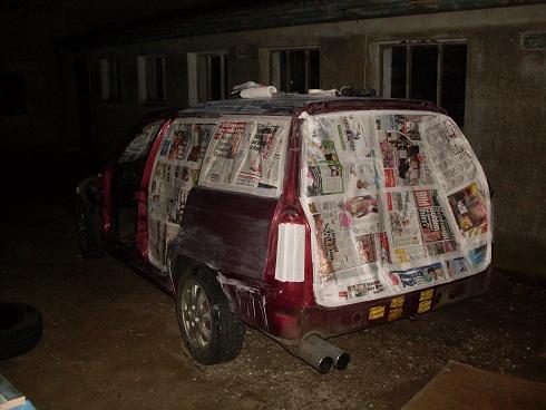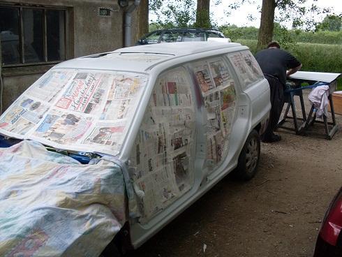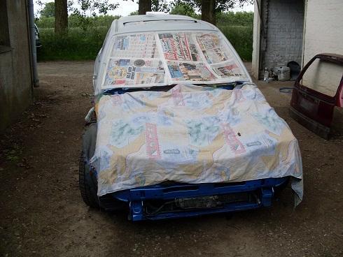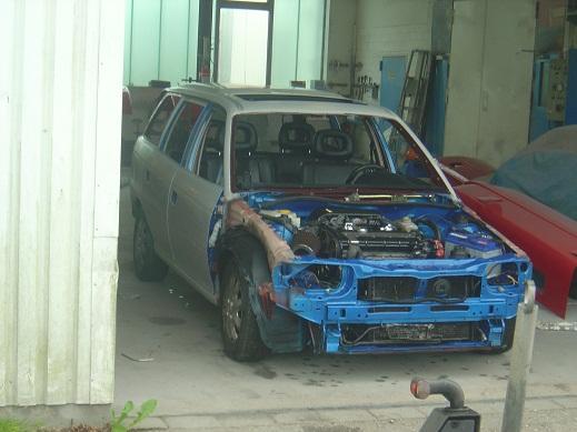 Ich hatte mich erst um Türen,Haube aussen und die anbauteile gekümmert. Von mein alten Astra hab ich die Lackierten Facelift Griffe übernommen ohne schlösser. Dann hab ich die karosserie abgeklebt,geschliffen und gefüllert. Leider sahen wir beim scheibe rausschneiden der Heckklappe nicht so schöne sachen sodas ich gesagt habe das ich ne andere besorge in absehbarer zeit und die alte hin pfusche.