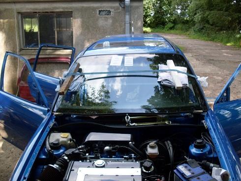 Das mit den Türen war echt ätzend. Hatte für die Türen noch getönte Scheiben liegen die dann rein kamen. Wir haben dann schnell mal die Frontscheibe eingeklebt. Neue Dichtungen für Front und Heckscheibe kamen dann auch. Rundum kam dann meine Schwarze Beleuchtung zum einsatz, Kotflügel, türen und grill ran dann machte ich mich dran die Haubenspiegel zu kleben. Leider hat sich dadurch ne Delle au der Haube abgezeichnet aber wenn wir mal kein Regen haben werde ich mich auch mal da dran machen es zu richten. Schweller sind bis heute nicht geklebt weil brauch das auto im moment und da mein Kadett wieder bei mir steht hab ich nur draussen platz.
