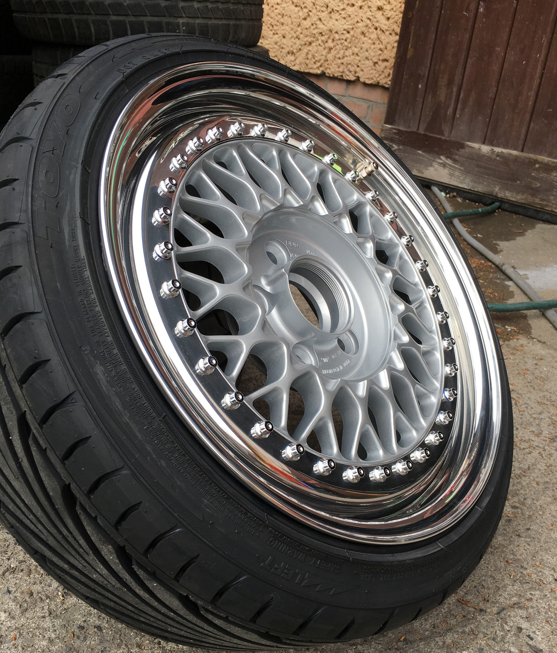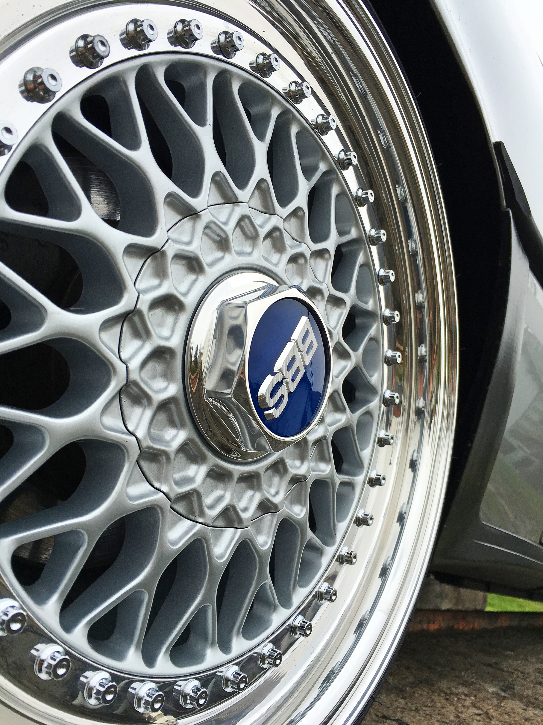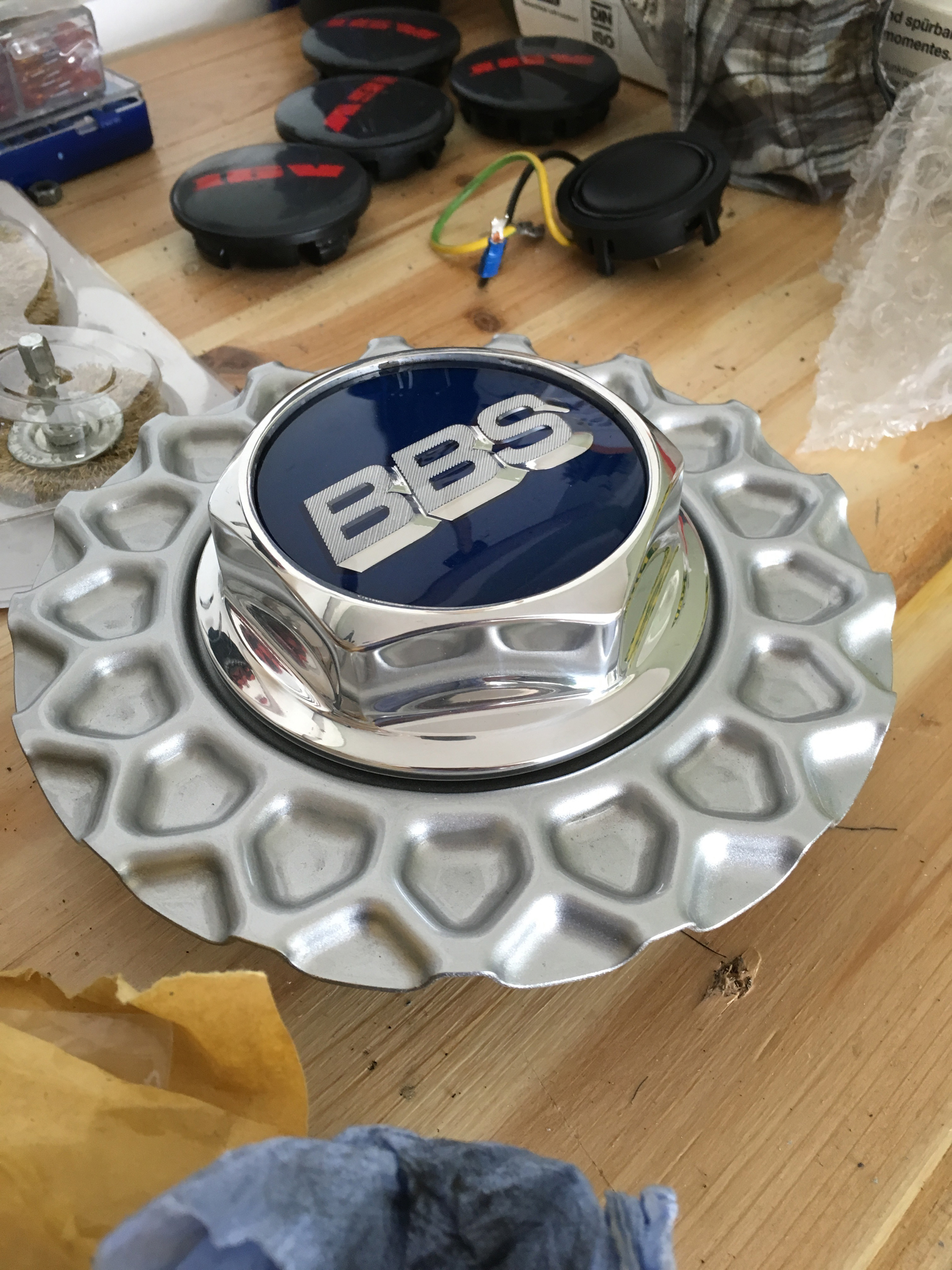 Als ich dann in der Garage war, habe ich erstmal die BBS Embleme eingesetzt und darauf geachtet,dass diese schön gerade in dem Sechskant sitzen.
