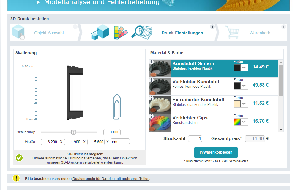 Kunststoff Sintern ist als Druckverfahren auszuwählen.