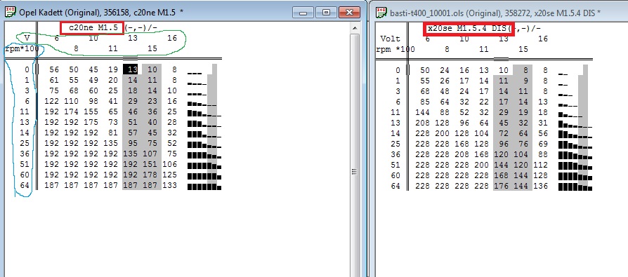 Anbei ein Vergleich Kadett M1.5 C20ne und Omega B M1.5.4 x20se. Der Omega hat DIS.