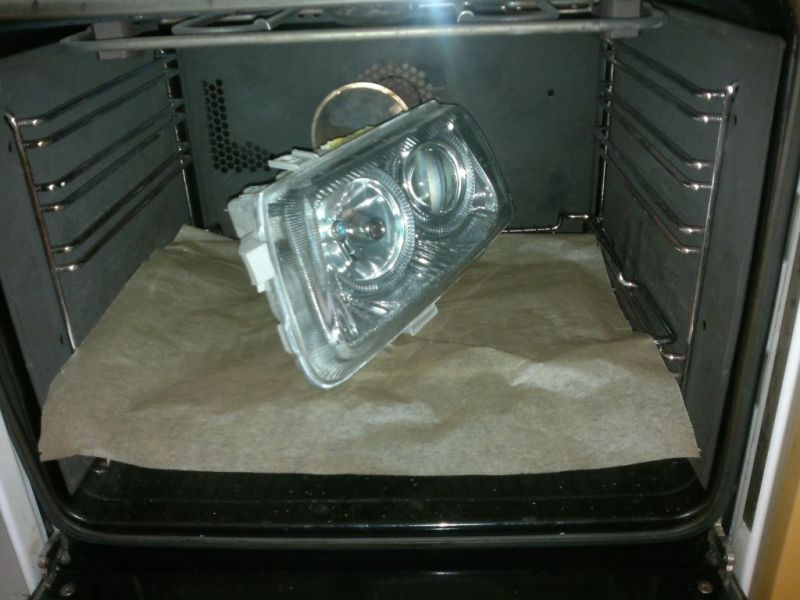 Erst alles auf 50 bis 60 Grad im Backofen dann nach ner viertel h auf 100 Grad und ne weitere viertel h später kannst des Glas abziehen. Aber gleich, am besten im noch Warmen Zustand, den alten Klebeschmodder rauskratzen bzw. putzen. Ist ne Sauarbeit aber in Verbindung mit dem Scheibenkleber später ginge das net Gut. Geht aber nur bei Scheinwerfern mit Echtglasscheibe. Dann auslackieren wie des etwa vorhast; danach mit Scheibenkleber wieder zammkleben und Spass haben. Aber immer vorher mitm Tüv absprechen was der meint!! Grüssle.....