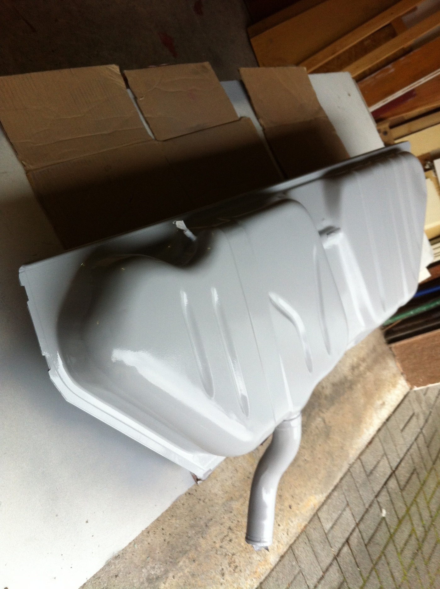Nachdem ich den Tank von dem Bitumenmüll befreit habe wurde er außen schick gemacht.