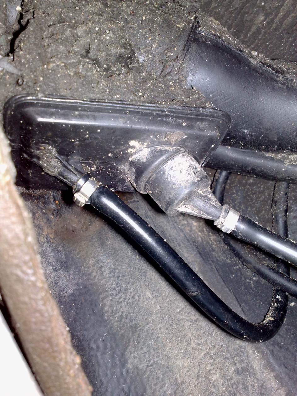 In den Behälter führen 2 kleine Plastik-Schläuche wo ordentlich Luft angesaugt wird wenn der Motor läuft.