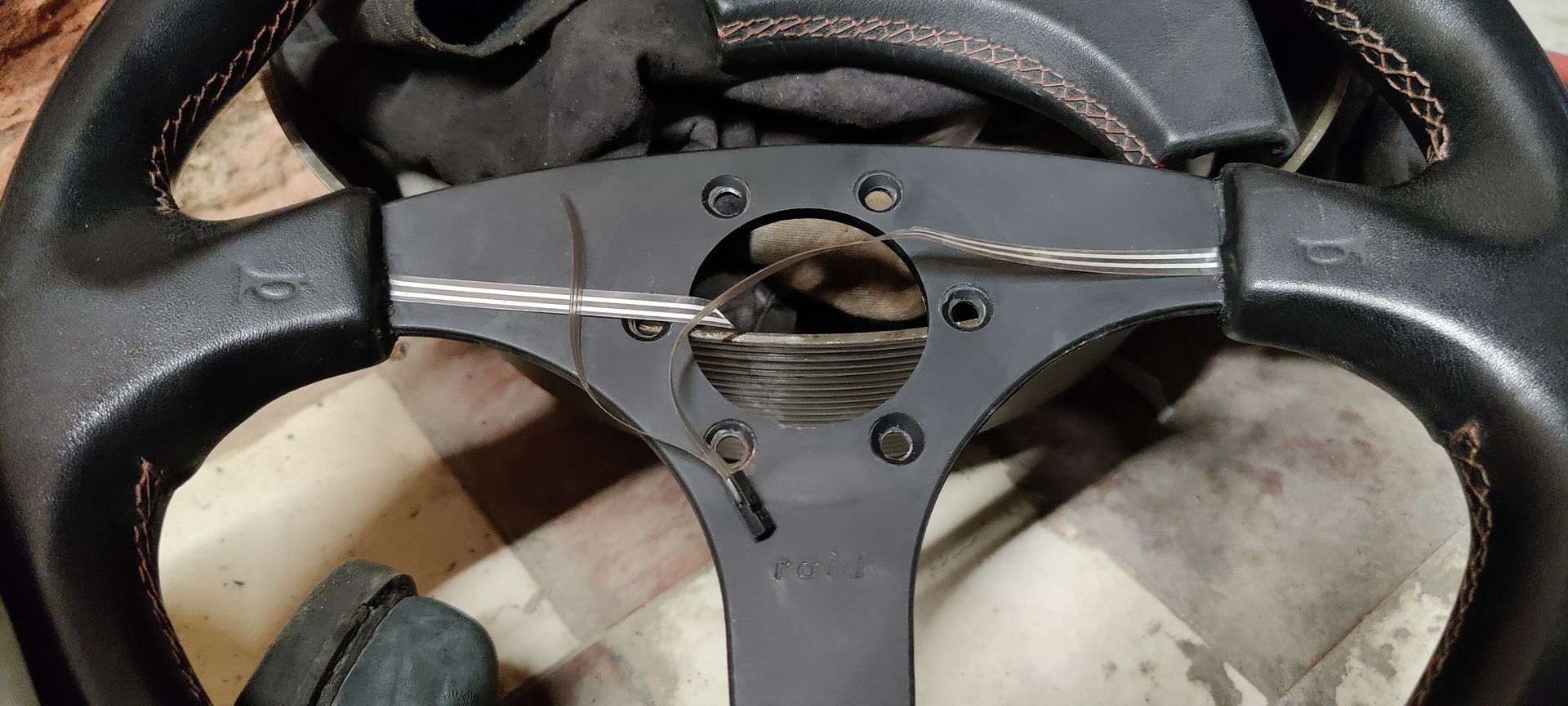 Am Lenkrad kommen von beiden Seiten Leiterbahnen mit je zwei Bahnen raus. Eine Seite ist abgerissen.